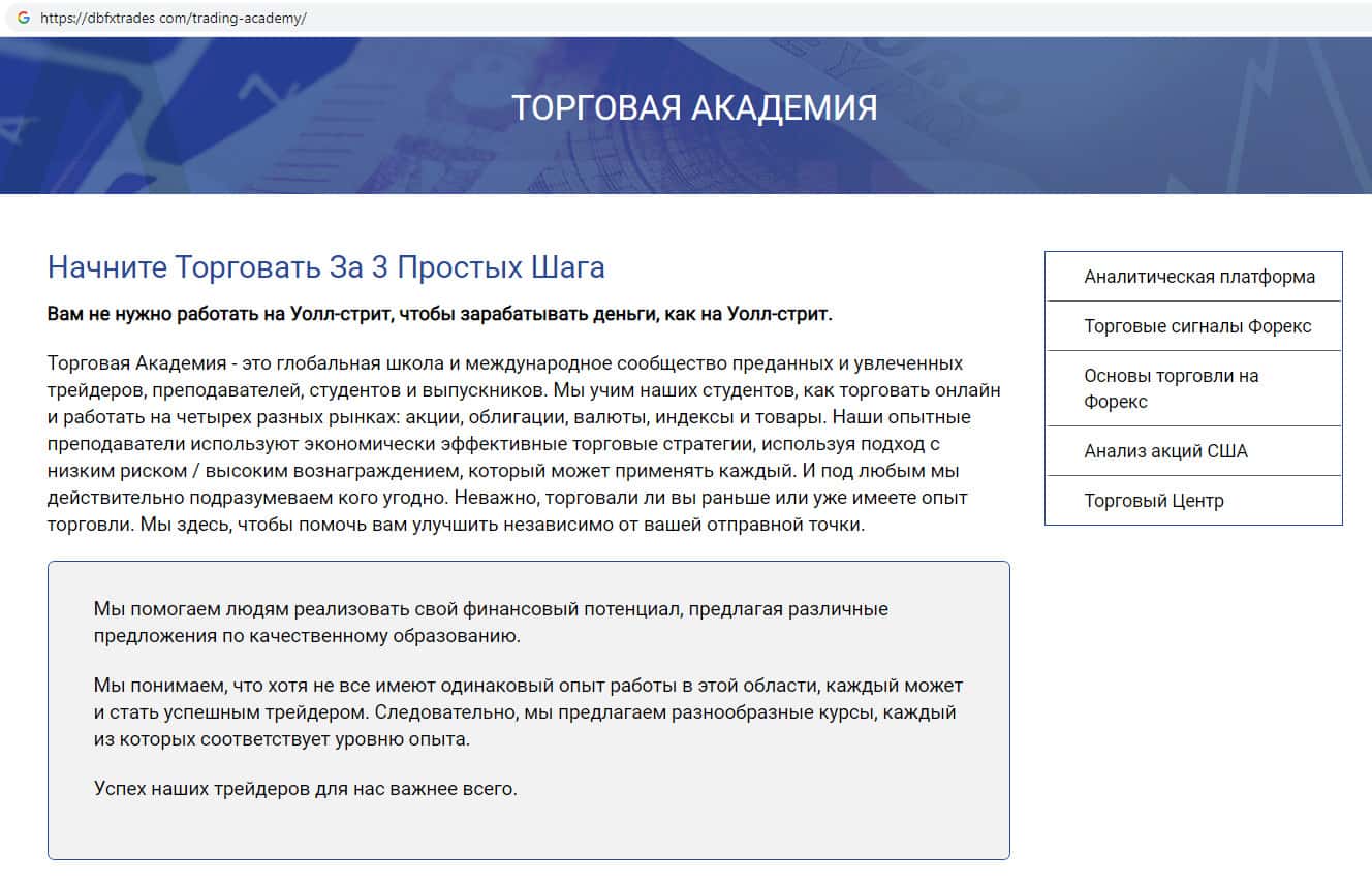 Аферисты ДБФХ Трейдес предлагают обучиться псевдо-науке на их фальшивом сайте