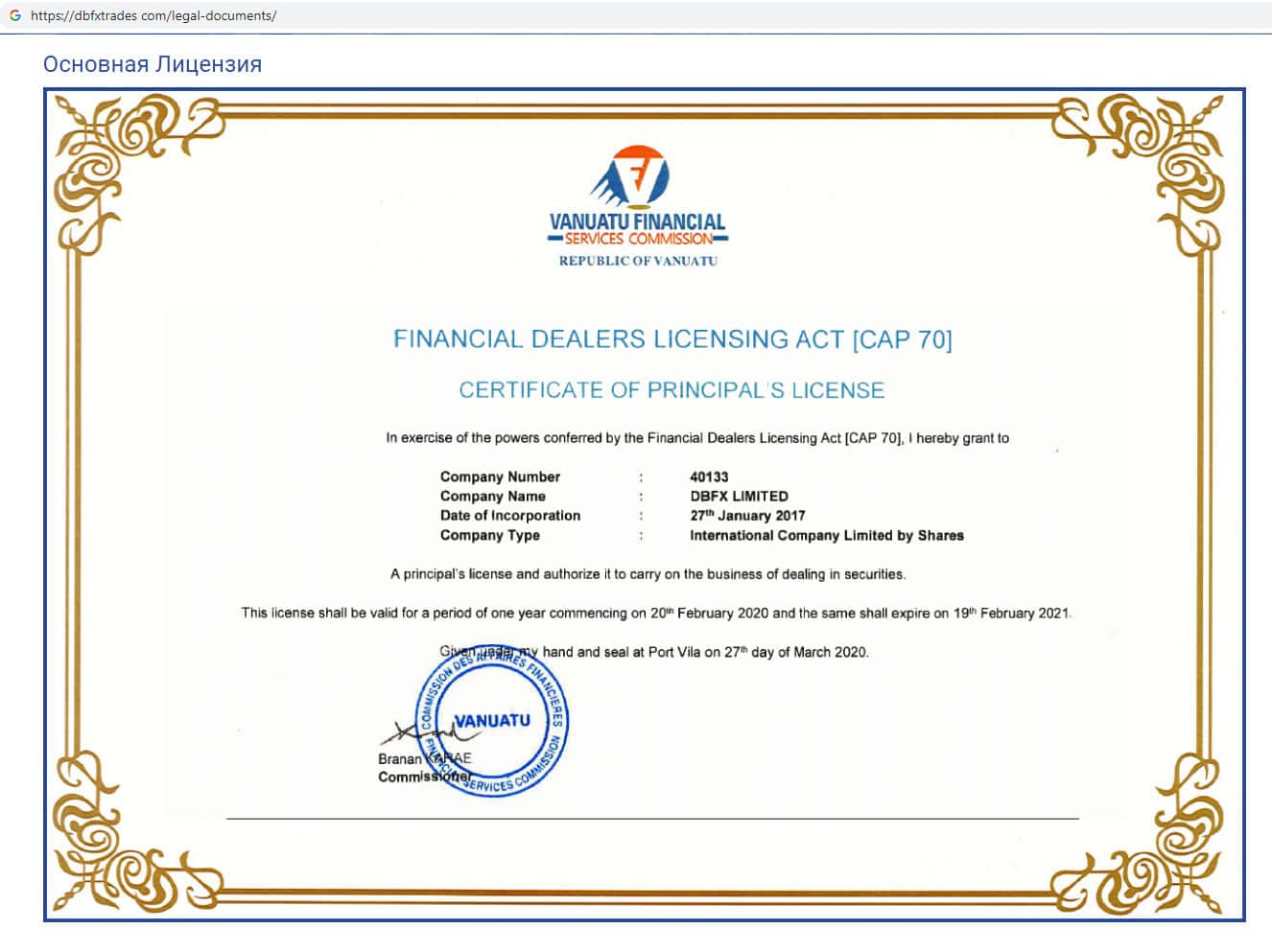 - Оффшорное место регистрации мошеннической организации DBFXTrades