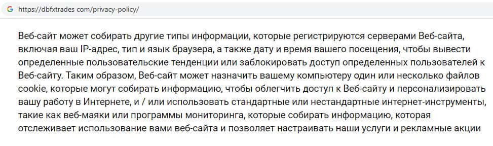 Политика конфиденциальности на сайте скам-брокера ДБФХ Трейдес