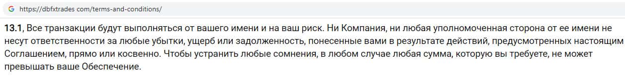 Условия пользования сайтом мошеннической организации DBFXTrades