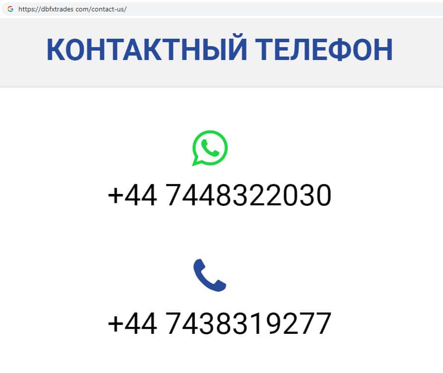 Если Вам навязчиво названивали с номеров телефона, которые указаны на скриншоте ниже, а именно: +447448322030, +447438319277, то знайте, что это были мошенники DBFXTrades, которые втираются в доверие к людям и обворовывают их торговые платформы, снимая все денежные средства со счетов клиента.