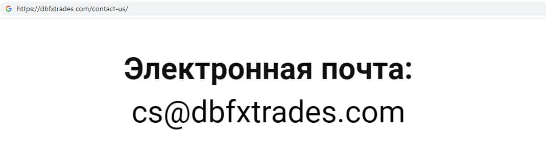 - адрес электронной почты брокерской скам-конторы ДБФХ Трейдес: cs@dbfxtrades com