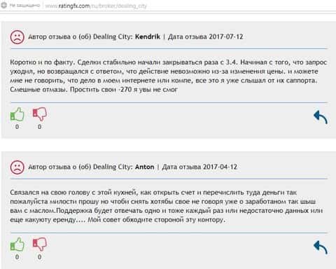 - Контора Dealing City получила еще одну порцию негатива от своих клиентов