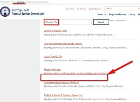 Из информации на официальном сайте конторы Dealing City нам стало известно, что компания Dealing City Inc зарегистрирована на территории Британских Виргинских островов как (IBC) Международная Бизнес Компания, регулируется BVI Financial Services Commission Act, 2001, регистрационный номер 499905. Но есть два больших НО. Если это даже правда, то эта лицензия дает право вести свою деятельность только на территории кем она выдана, а именно на тех самых островах. Мы все же решили проверить, насколько это правда и заглянули на официальный сайт регулятора British Virgin Islands Financial Services Comission. Как нам выдал результат поиска, здесь о кухне Дилинг Сити даже не слышали - можете сами проверить.