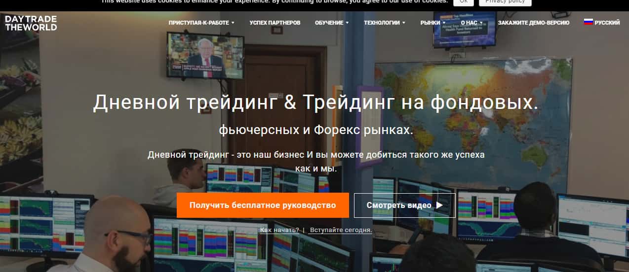 Начинается сайт у мошенников Day Trade the World с довольно типичной и банальной шапки сайта, в которой у аферистов Дей Трейд зе Ворлд имеется вполне ожидаемая лапша на уши наивным клиентам, под предлогом которой жулики Day Trade the World будут активно пытаться развести наивную клиентуру на ввод их средств в свою форекс-помойку для развода.