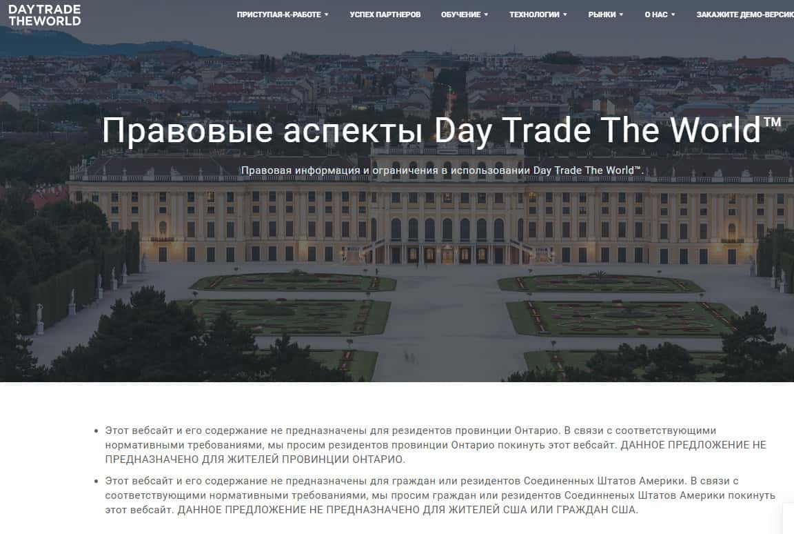- Обзор на внешний вид сайта лохотрона Дей Трейд зе Ворлд в сети интернет
