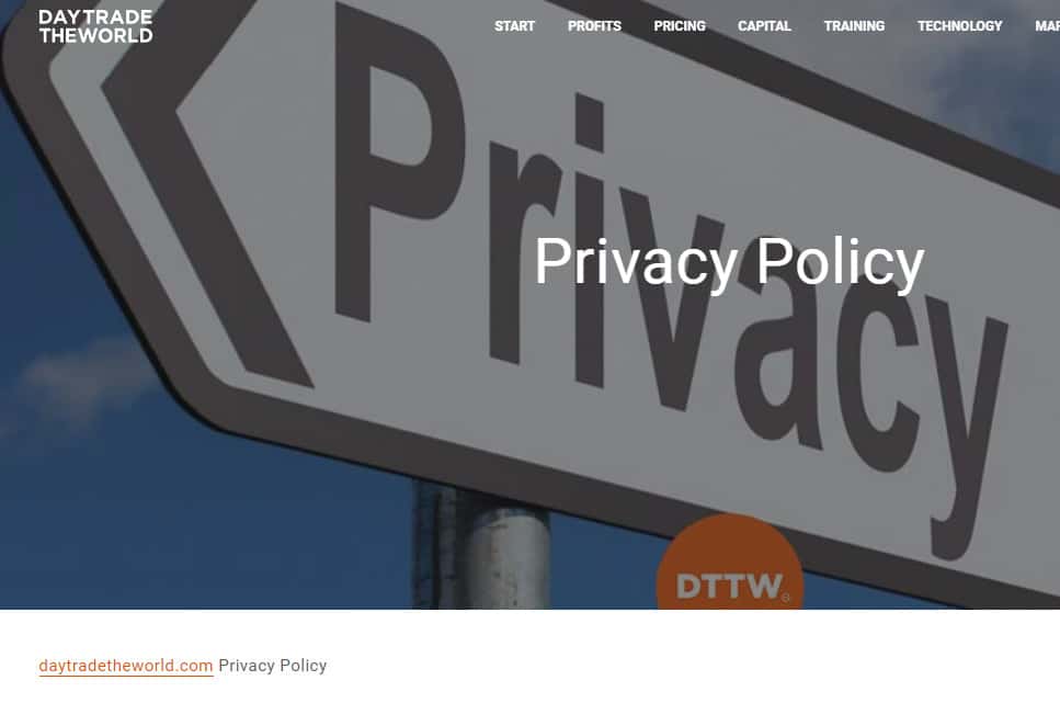Под свою политику конфиденциальности лохотрон Дей Трейд зе Ворлд отвел отдельный раздел своего подвального сайта, а так же аферисты Day Trade the World все же поленились переводить политику конфиденциальности на русский язык. На изображении, расположенном ниже, вы можете увидеть начало политики конфиденциальности шулеров.