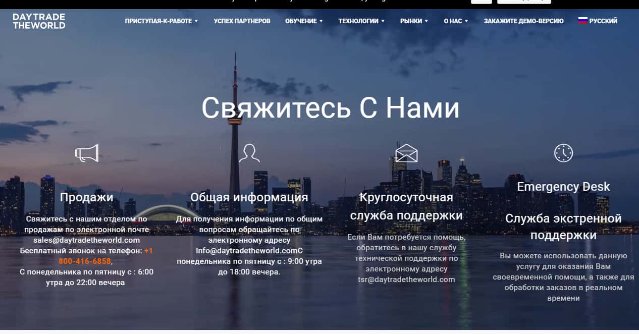 - почты sales@daytradetheworld com и info@daytradetheworld com и tsr@daytradetheworld com
