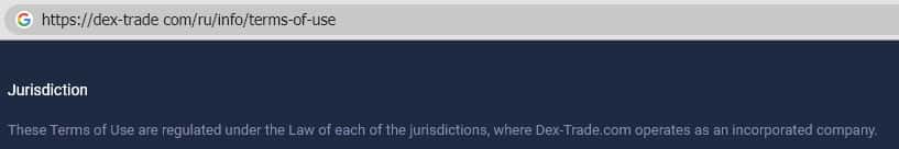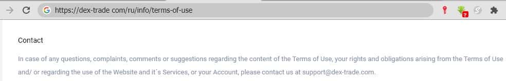 "Клиентское соглашение" называемое на портале Декс Трейд "условиями использования ресурса" являются недействительными, так как не содержат реквизитов компании, управляющей работой сайта Dex-Trade.