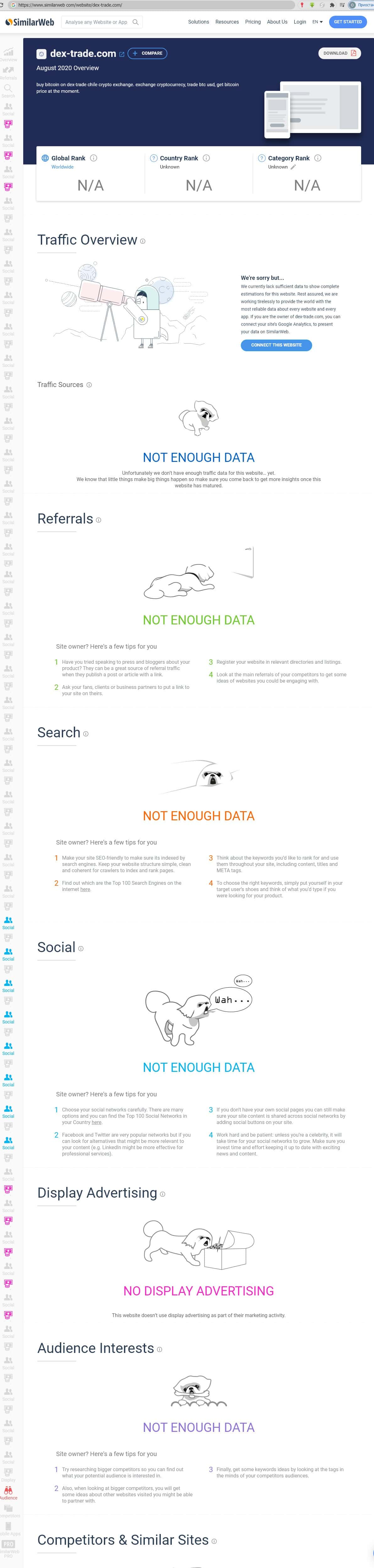Проведя анализ мошеннического проекта Декс Трейд на портале similarweb com можно сделать единственный вывод: этот проект не засветился ни в какой сфере, не имеет должной популярности, и это хороши - будет обмануто меньше наивных пользователей.