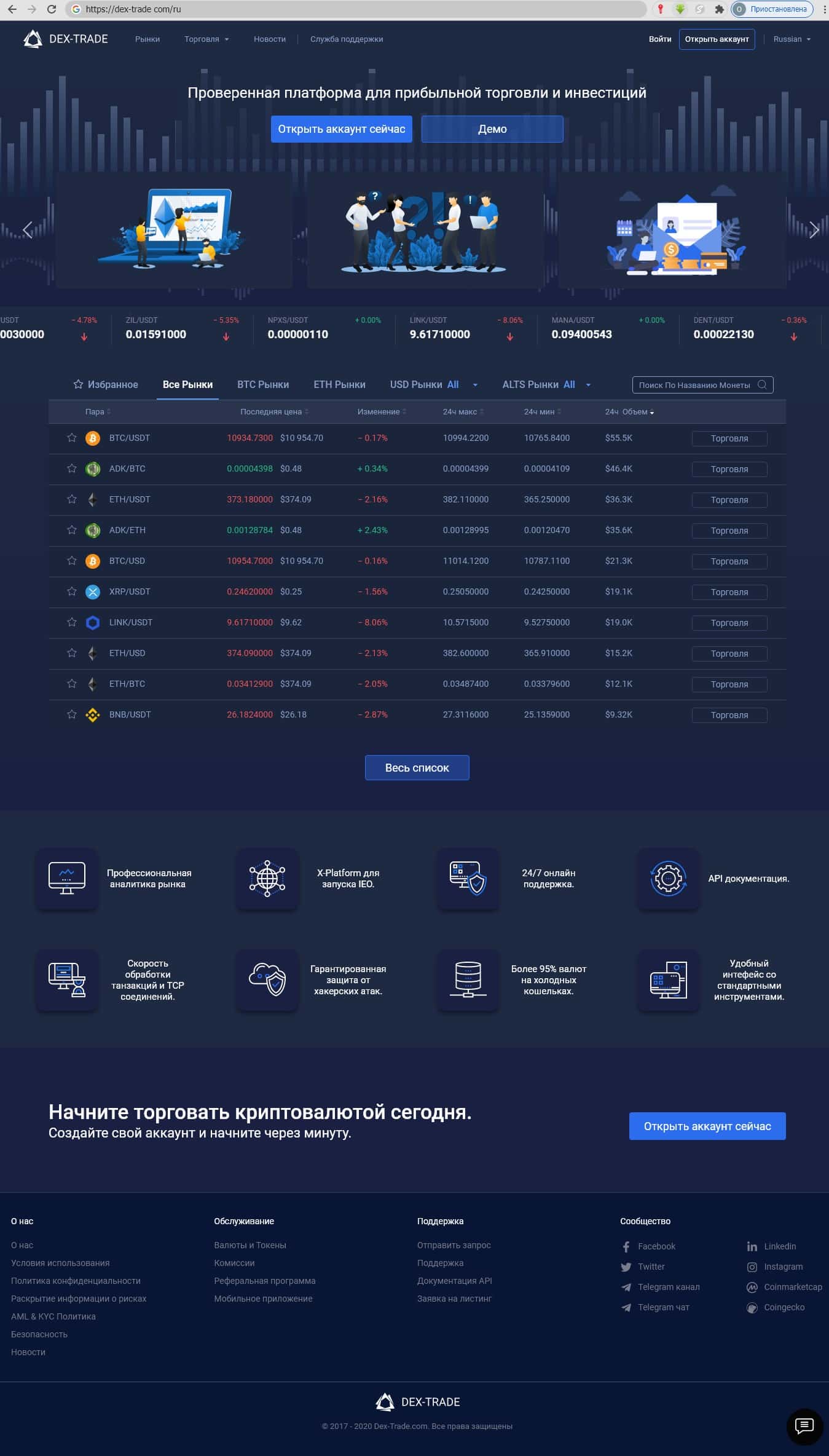 - Знакомство с главной страницей сайта мошенников Декс Трейд