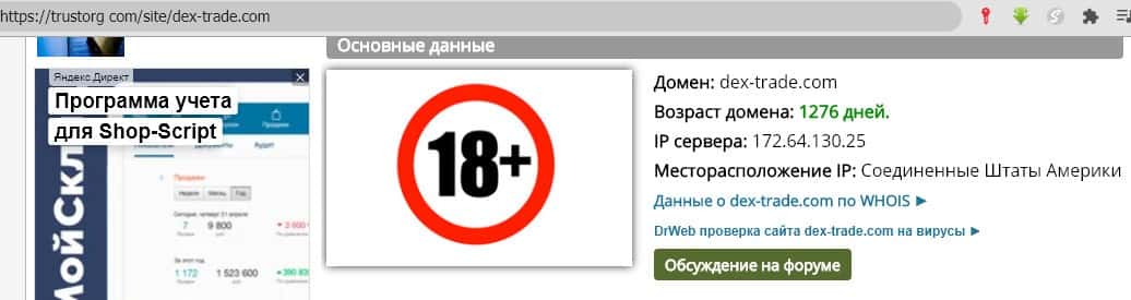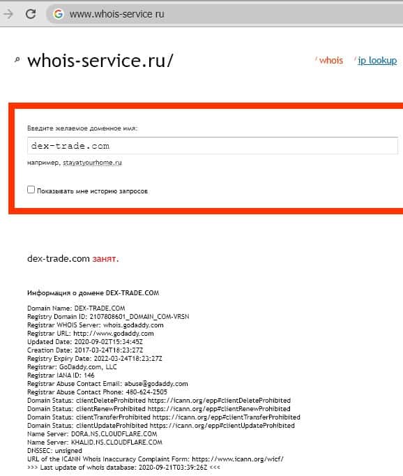- Принадлежность домена dex-trade com