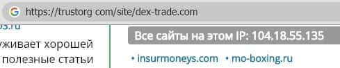 - Соседство афёры Декс Трейд с другими мошенническими проектами на одном IP