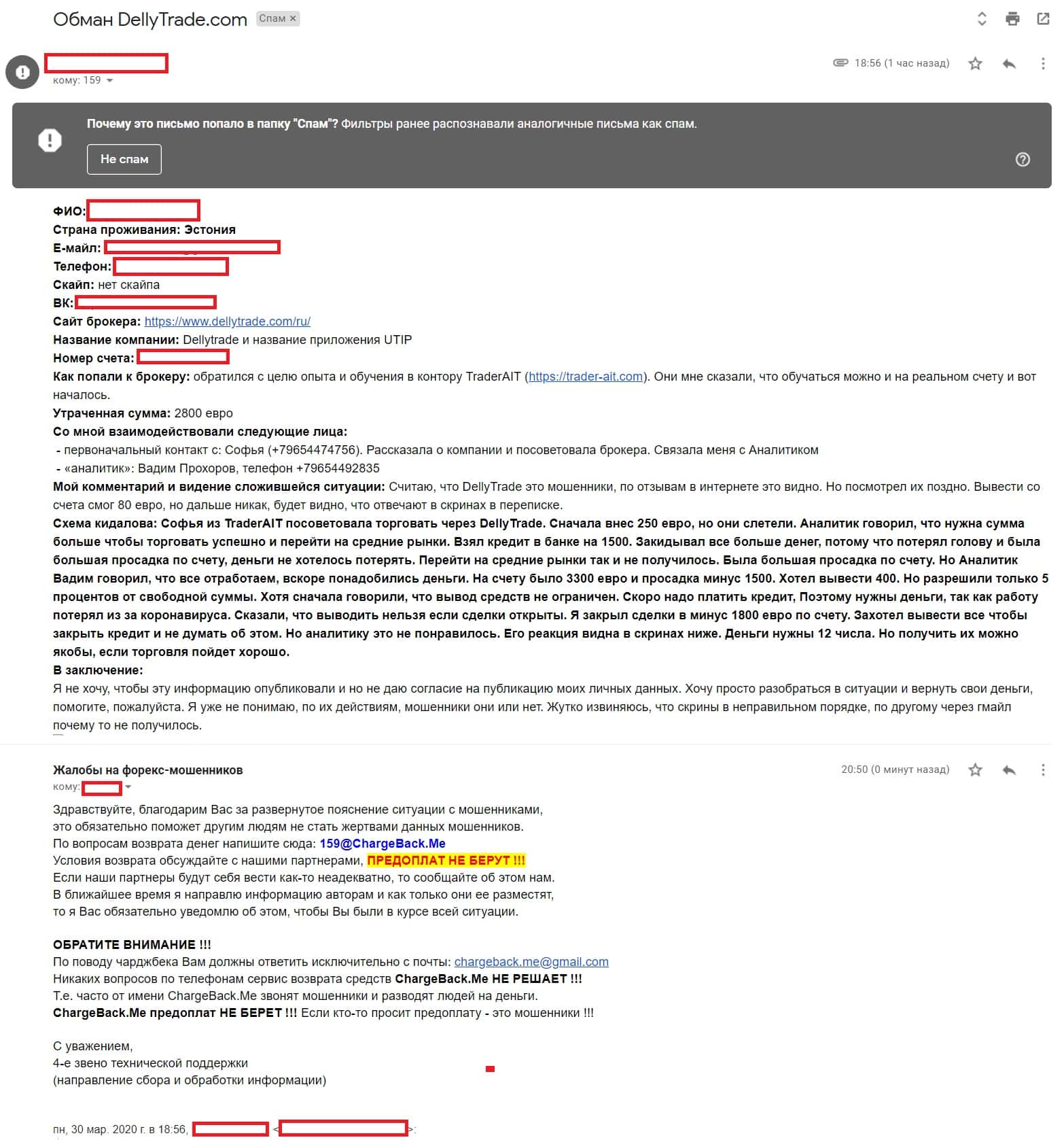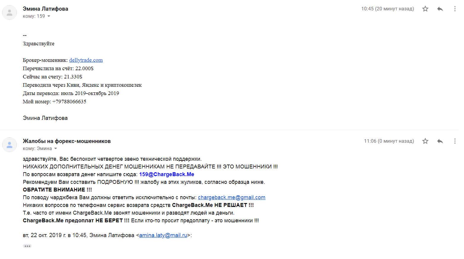 Ниже представлена первоначальная жалоба от человека, который стал жертвой мошеннических действий лохотрона Делли Трейд.