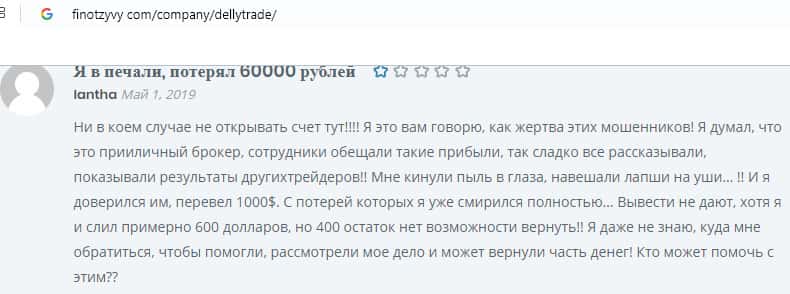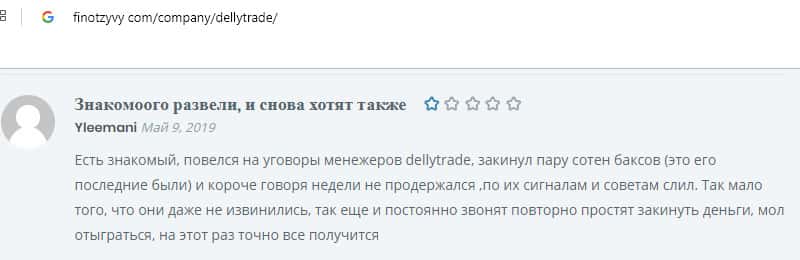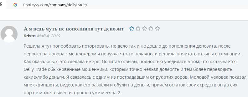 - Реальный негативный отзыв от человека, которого попыталась кинуть жульническая контора DellyTrade
