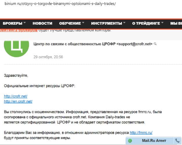 Еще один негативный комментарий в сторону шулеров DellyTrade от российского регулятора ЦРОФР