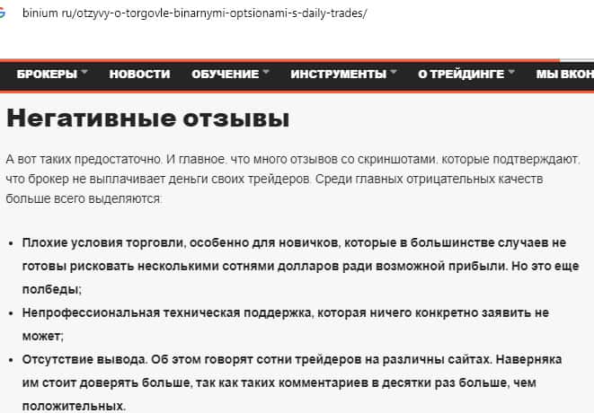 По мнению сайта BINIUM RU (Форекс и бинарные опционы), брокер DellyTrade - это компания, место которой только черный список для всех возможных клиентов. И доказательство тому расписано более подробно на следующем скриншоте.