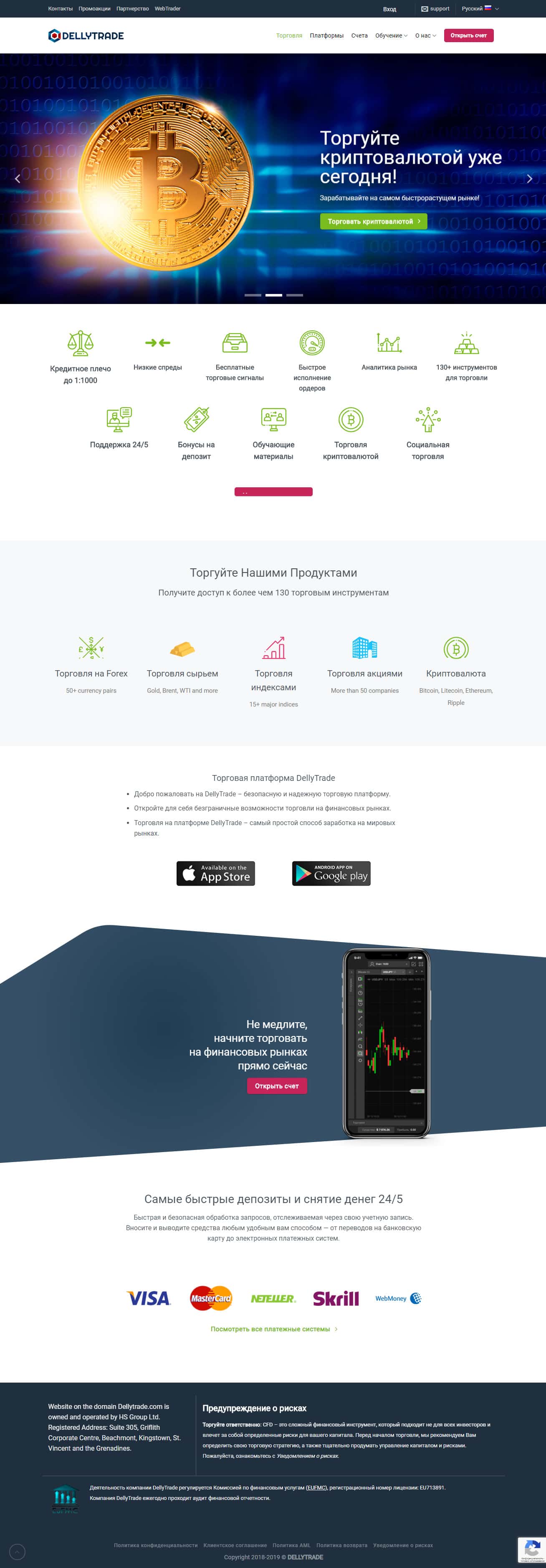 На первый взгляд, официальный сайт конторы DellyTrade пестрит броскими и эффектными картинками, красиво оформленными разделами, которая информирует будущих клиентов о своей работе. Но если копнуть глубже, то на самом деле оказывается, что все разделы заполнены весьма некорректно и не предоставляют исчерпывающей информации.