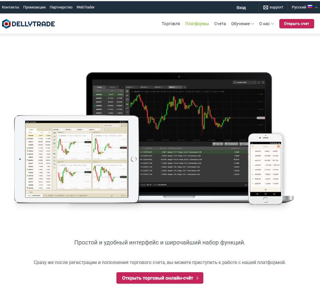 На следующей странице ресурса Делли Трейд, который посвящен Платформам снова красочно все оформлено и радужно описаны перспективы Вашего обогащения, стоит лишь открыть торговый онлайн-счет. Но по факту, простой разводняк и кидалово, где Вы просто лишитесь своих денег.