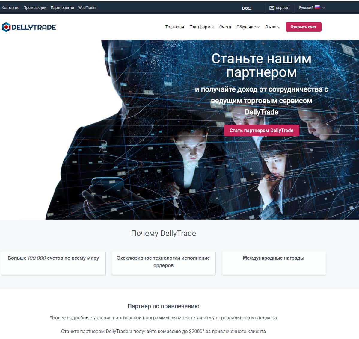 Еще один достаточно интересный раздел Вы сможете найти на сайте у жуликов DellyTrade - это раздел "Партнерство", в котором контора приглашает всех клиентов стать их партнером и получать стабильный доход от совместного сотрудничества. А по факту - никаких гарантий, а только хитрый расчет и лохотрон.