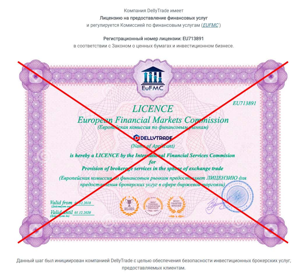 Мошенники из конторы DellyTrade нагло врут своим вкладчикам о регулировании собственной деятельности. По факту, регуляции и лицензии у них нет вообще. Есть только лицензия FMRRC, которая не особо котируется в индустрии бинарных опционов.