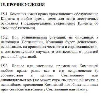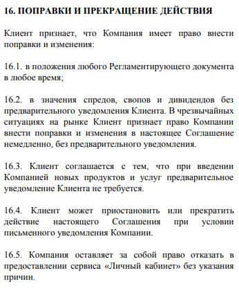 Подпункты 3) и 5) Раздела 16 Поправки и прекращение действия также построен на том, что эти проходимцы могут безнаказанно творить, что угодно, не ставя во внимание своих клиентов и их интересы. Развод, одним словом!