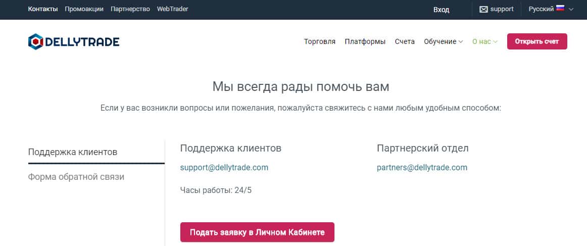 Для того, чтобы выйти на связь с аферистами из DellyTrade, они предоставляют только почту и форму для обратной связи. Явно, что это лохотронская организация, которая скрывает свой адрес, местонахождение и контактные номера телефонов. Таким образом, указываем Вам для связи с данной конторой электронки: