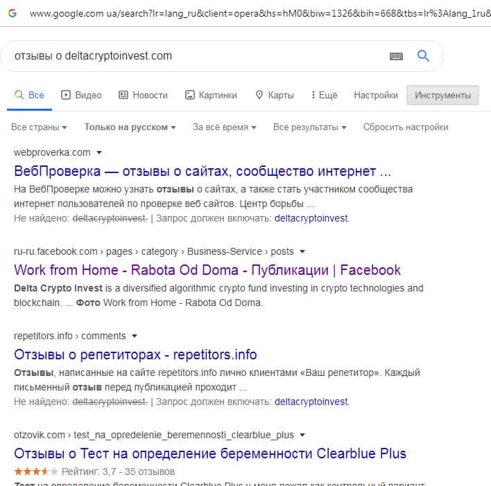 Отсутствие в сети сведений как о закрытом,так и о ныне действующем проекте мошенников из Delta Crypto Fund