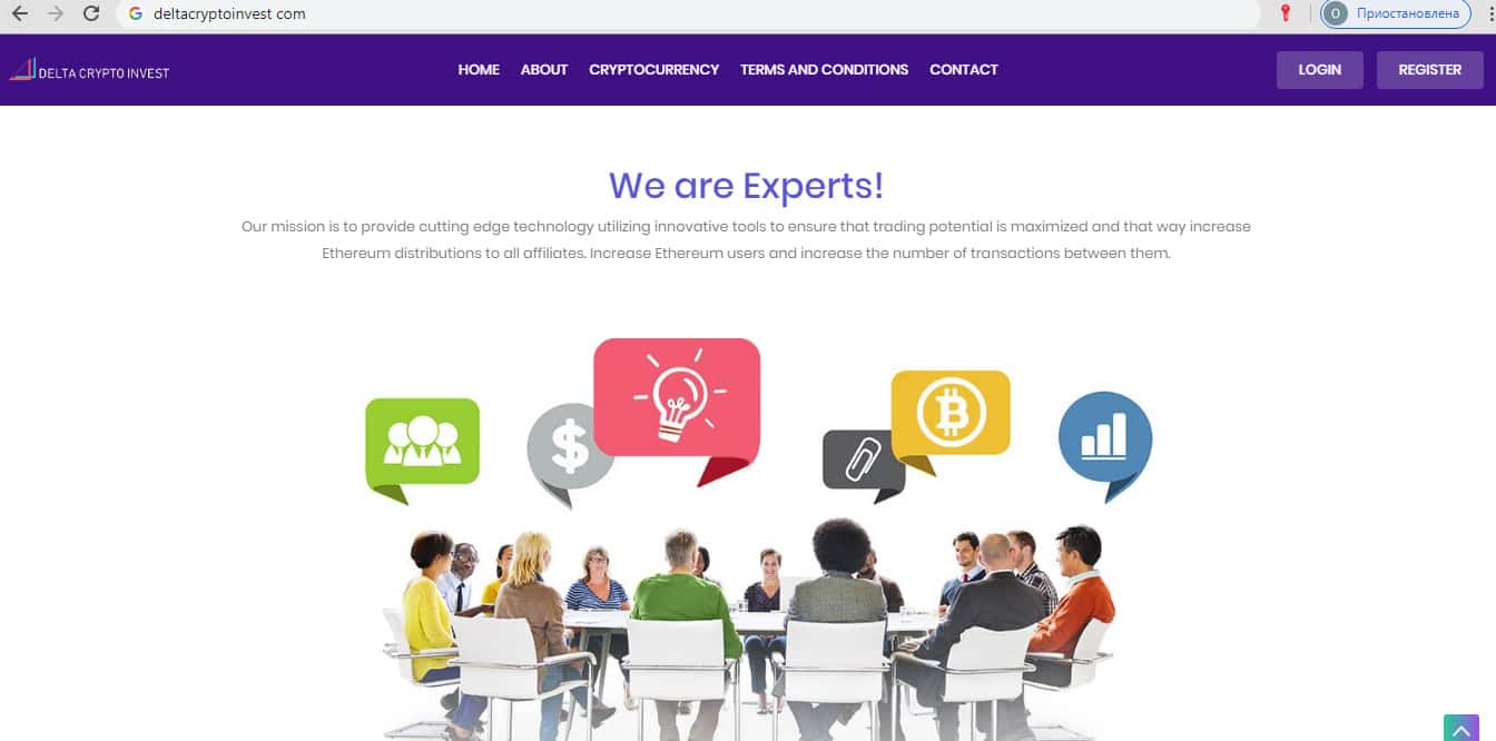 Как у всех проектов, посвященных торговле и инвестициям, сайт Delta Crypto Fund полон кнопками регистрации, поданными под разными соусами и с разными названиями. Портал инвестиционной площадки предназначен для сбора денежных средств с наивных обывателей впервые решивших совершить попытку пополнить свои финансы с помощью инвестиций.