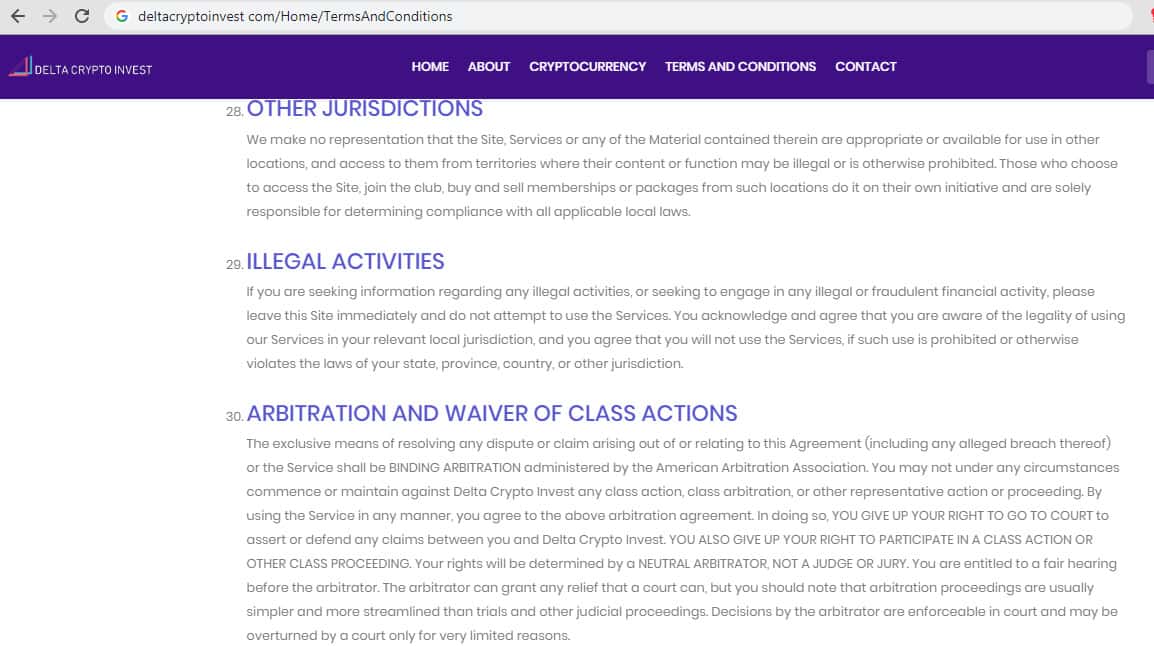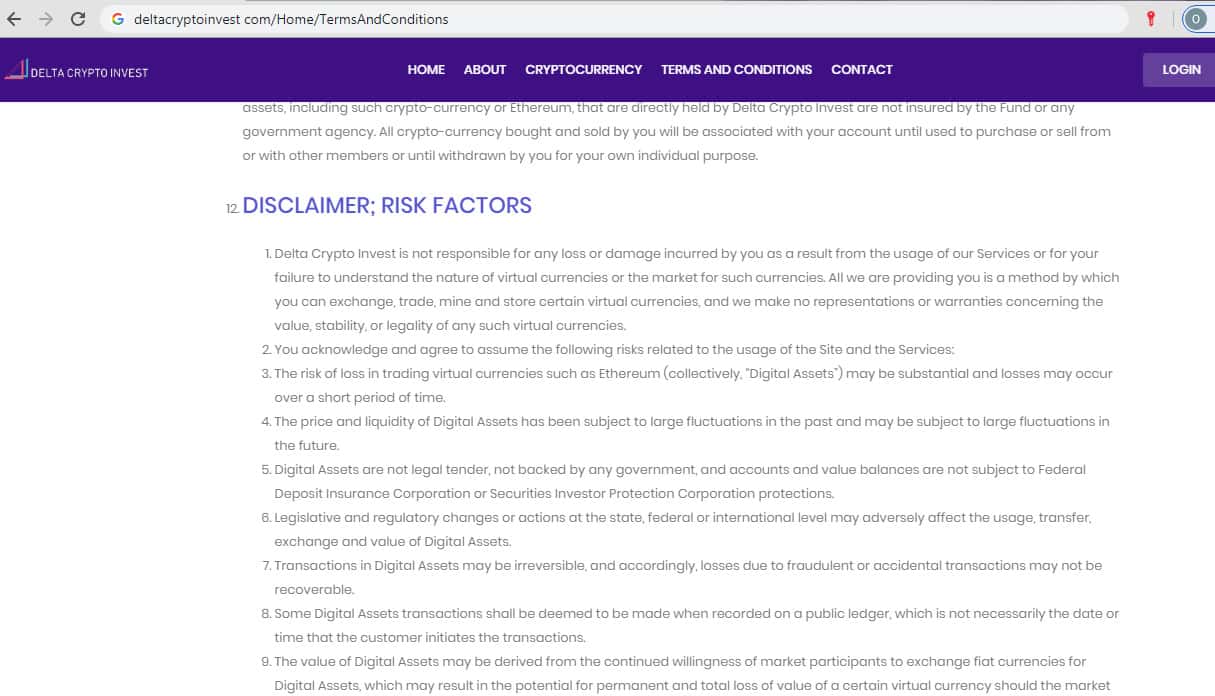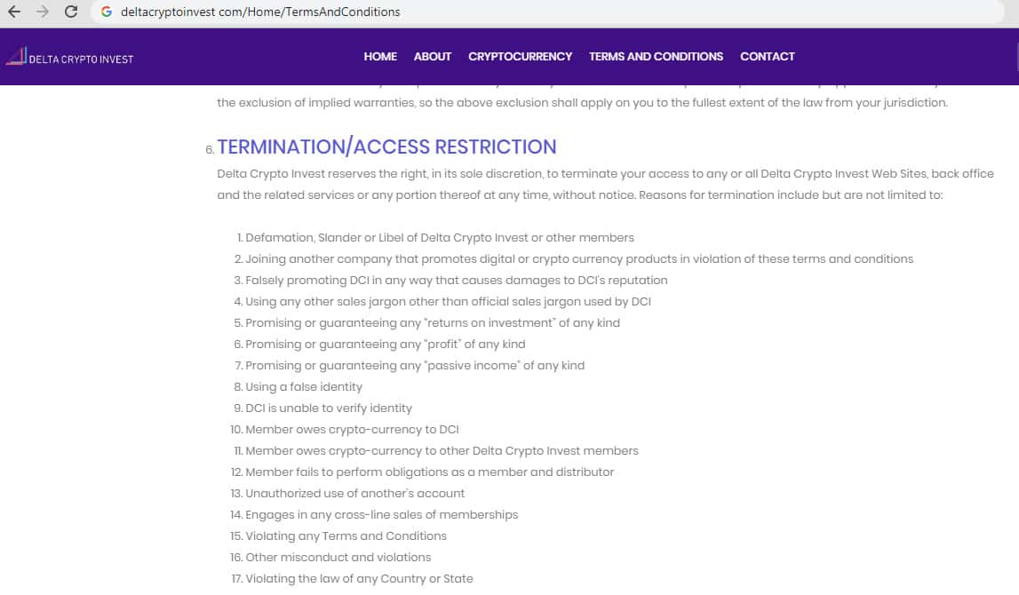 Раздел "Условия и соглашения", подписываемые клиентом при регистрации на портале Дельта Крипто Инвест, знакомит нас с беспрецендентным произволом администрации этого ресурса. По их мнению, в любой конфликтной ситуации клиент не прав, на нём лежит вся ответственность за всё происходящее.