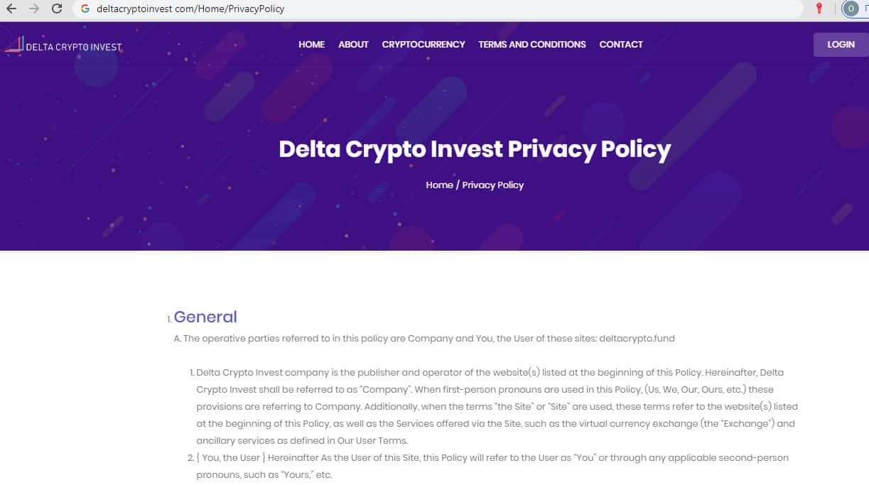 - Заявление мошенников Дельта Крипто Инвест о Политике конфиденциальности