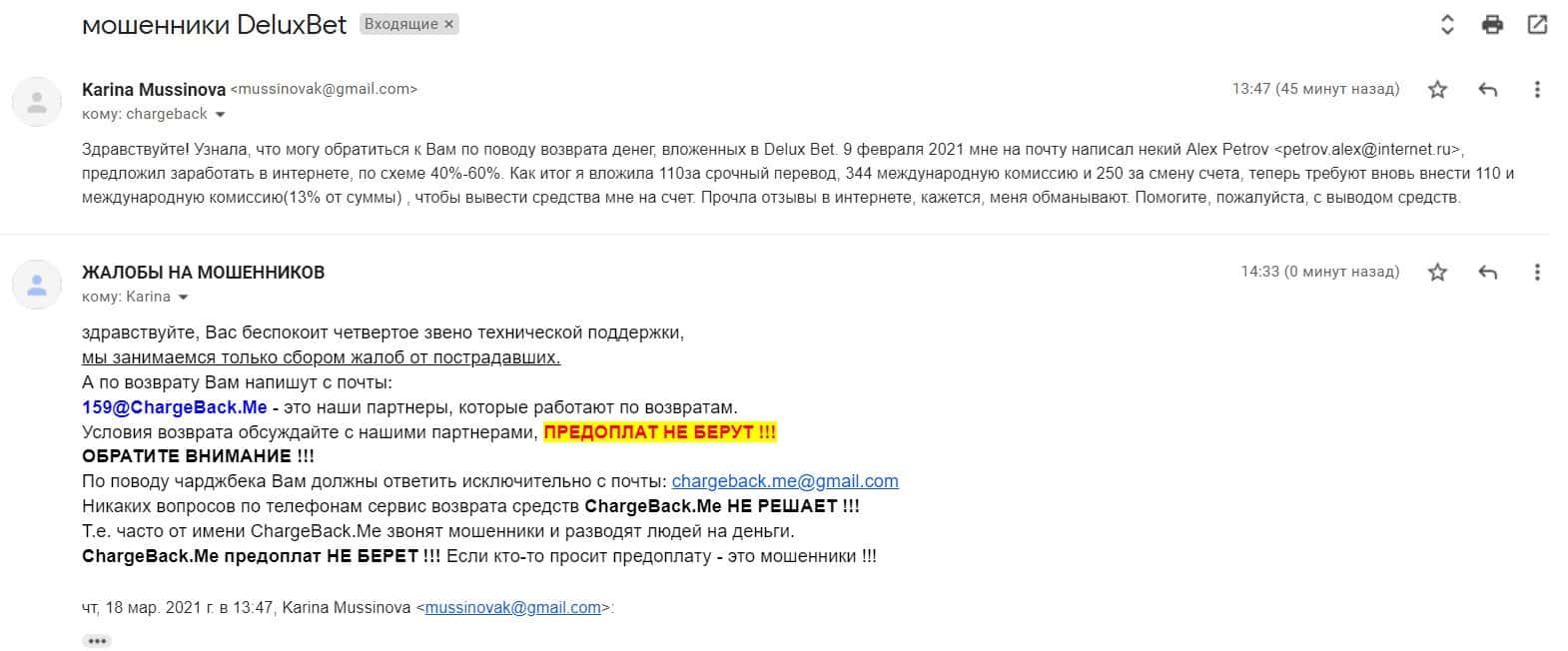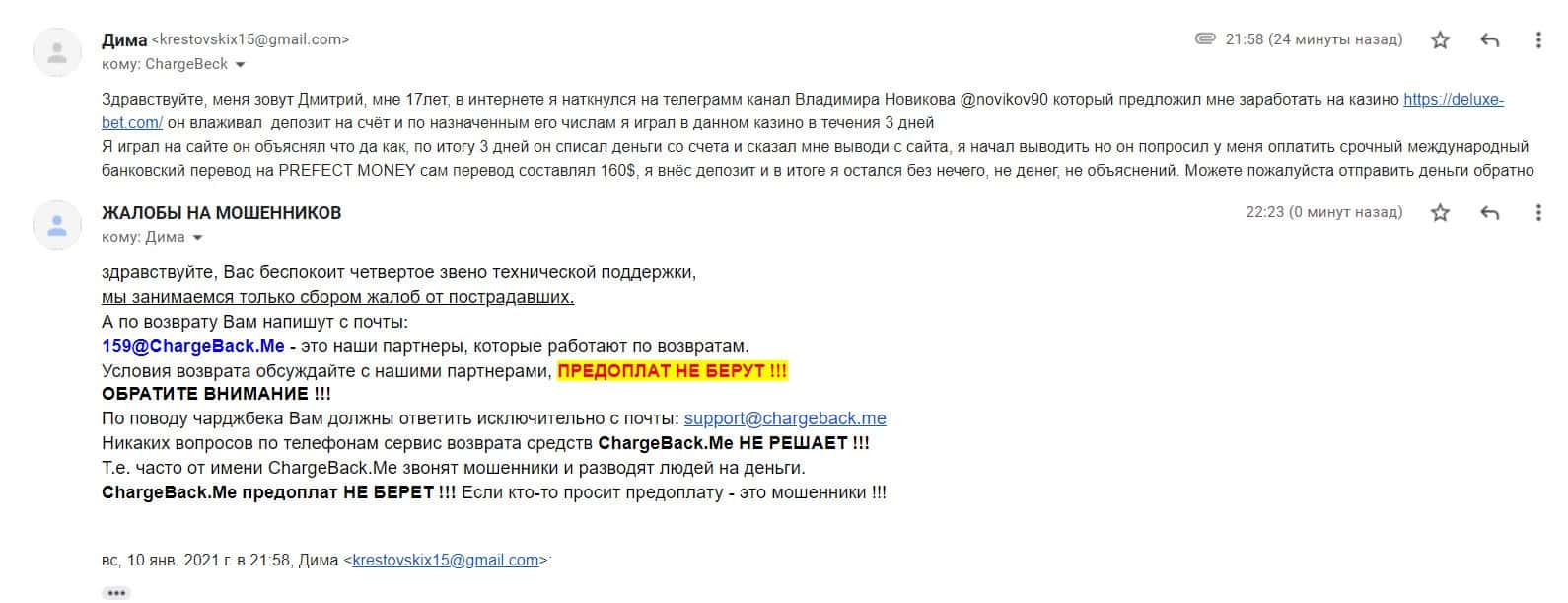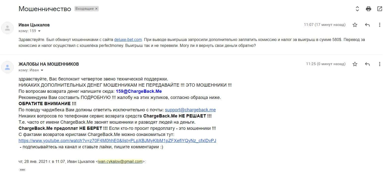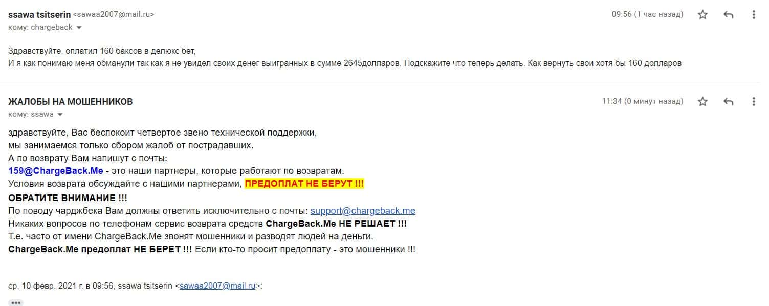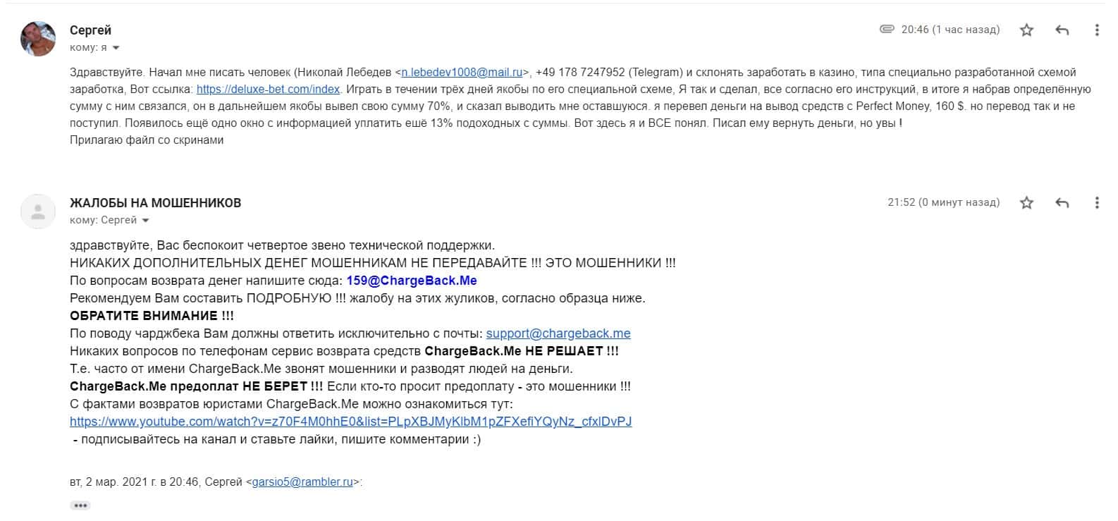- Жалоба на лохотронщиков Делюкс Бет, которые кинули клиента на деньги