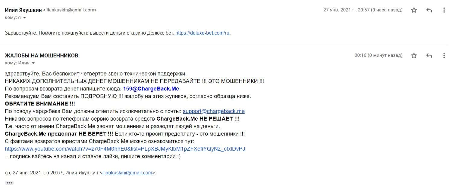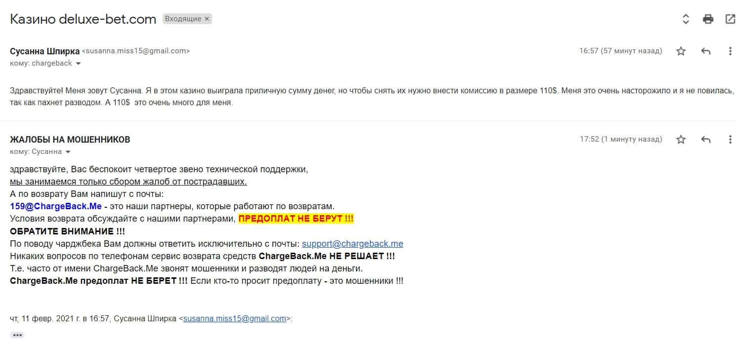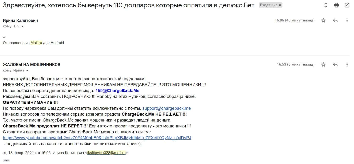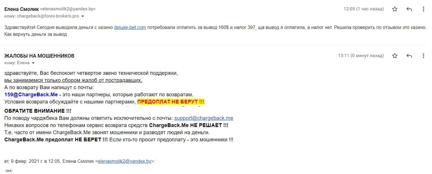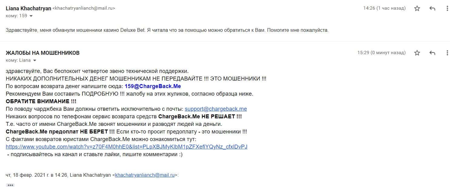 - Жалоба на лохотронщиков Делюкс Бет, которые кинули клиента на деньги