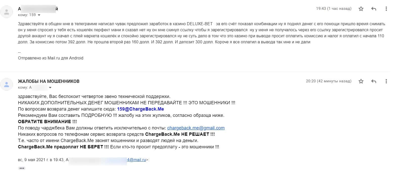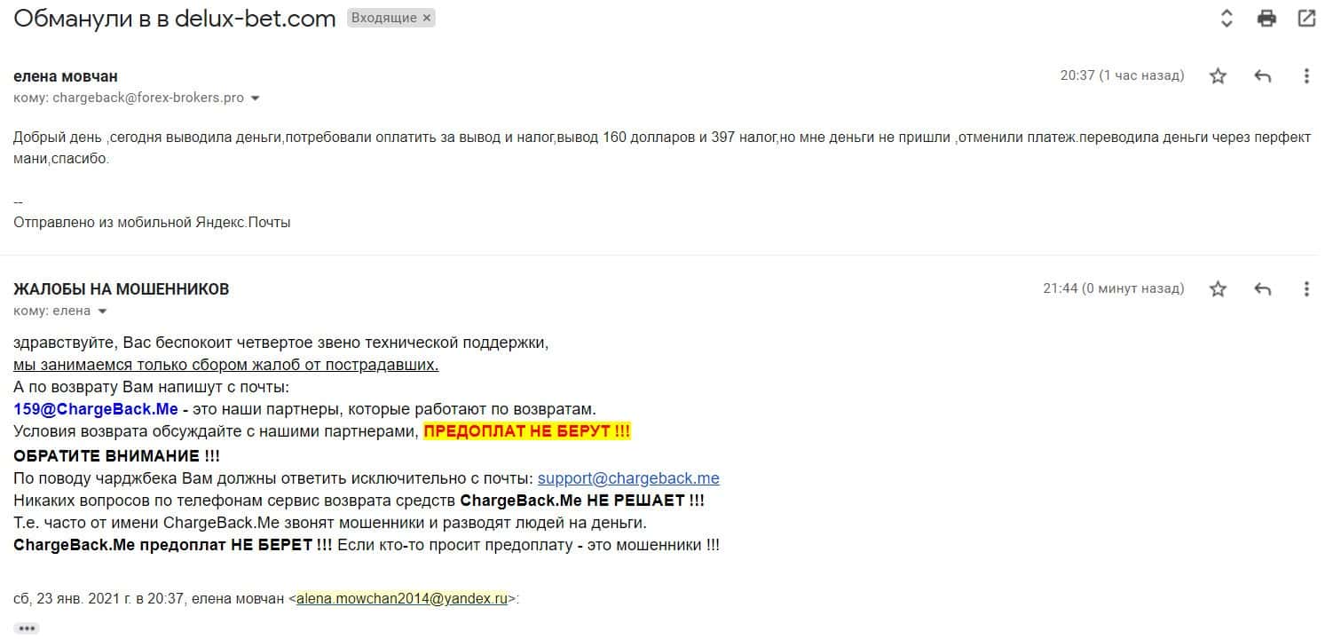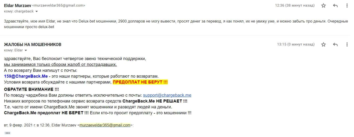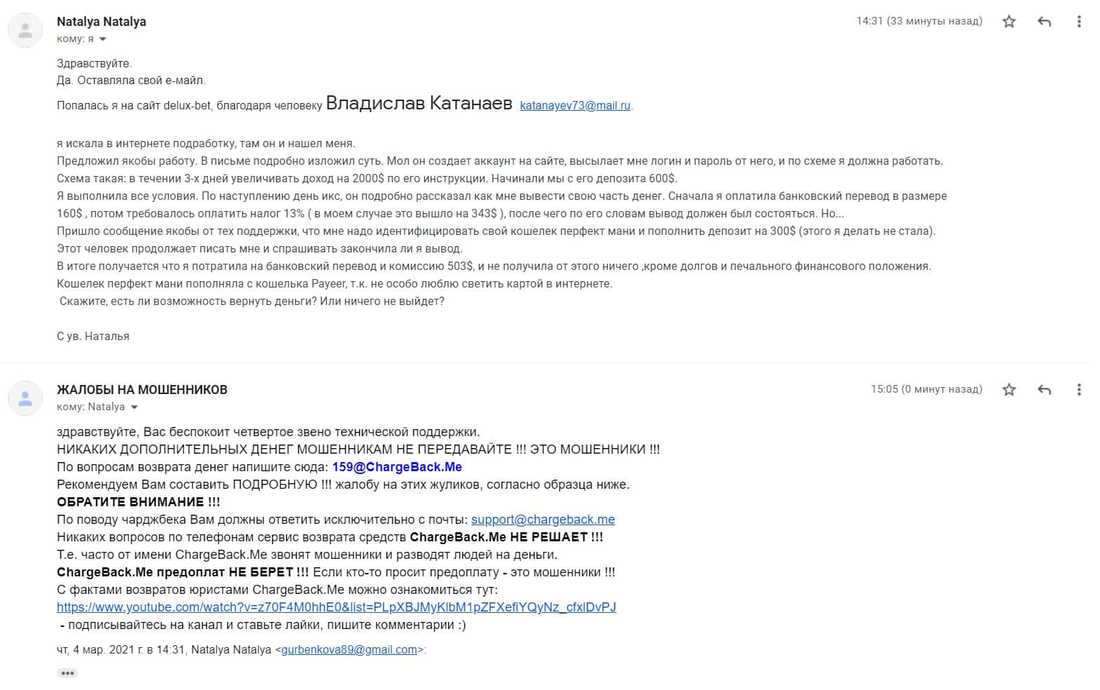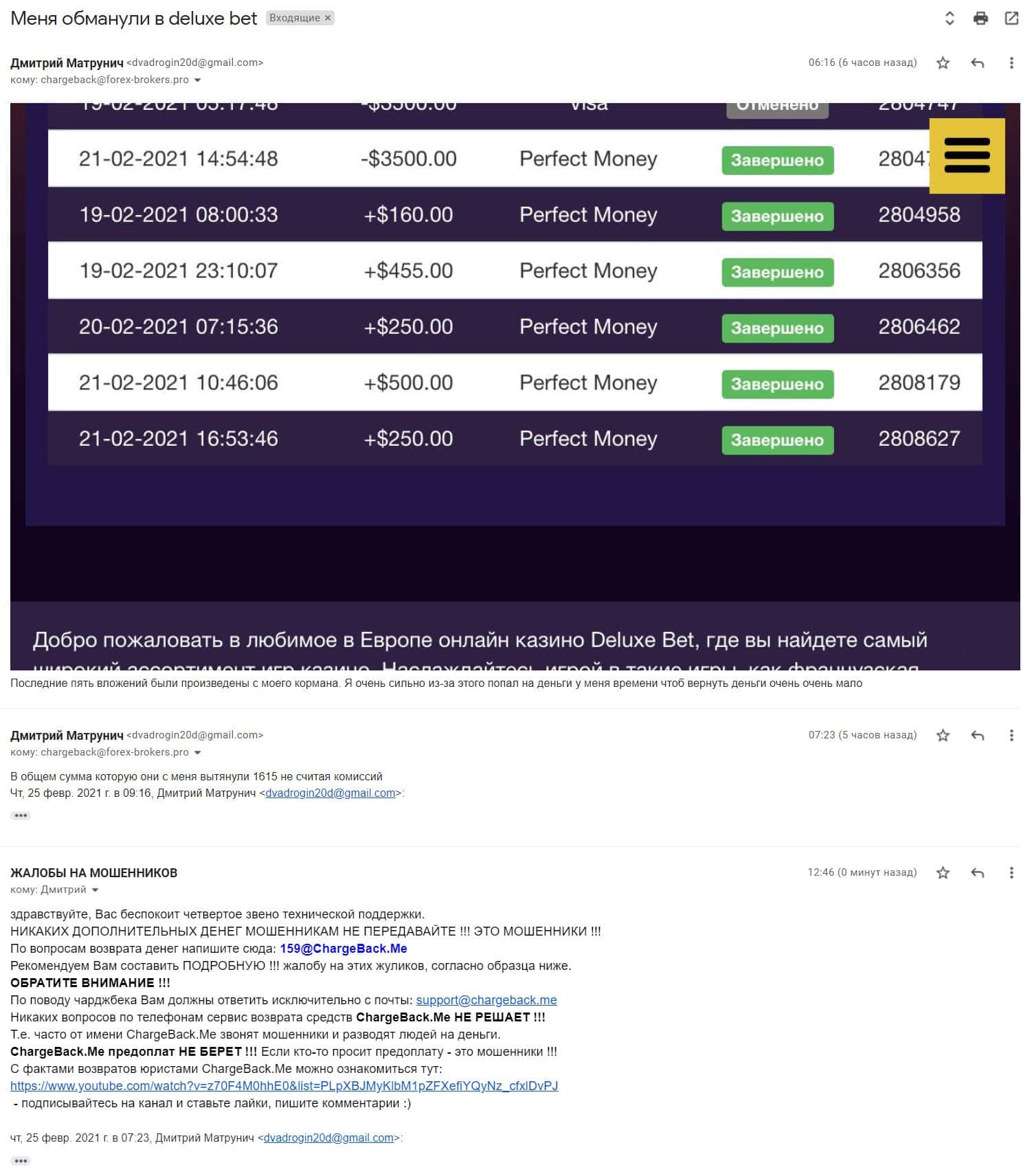 - Жалоба на лохотронщиков Делюкс Бет, которые кинули клиента на деньги