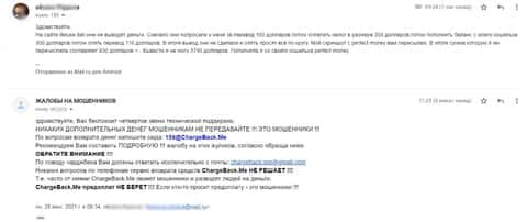 Перед вами жалоба клиента конторы Делюкс Бет, которому мошенники отказывают в выводе его средств 2300 долларов, заставляя при этом внести ещё средства на счёт компании.
