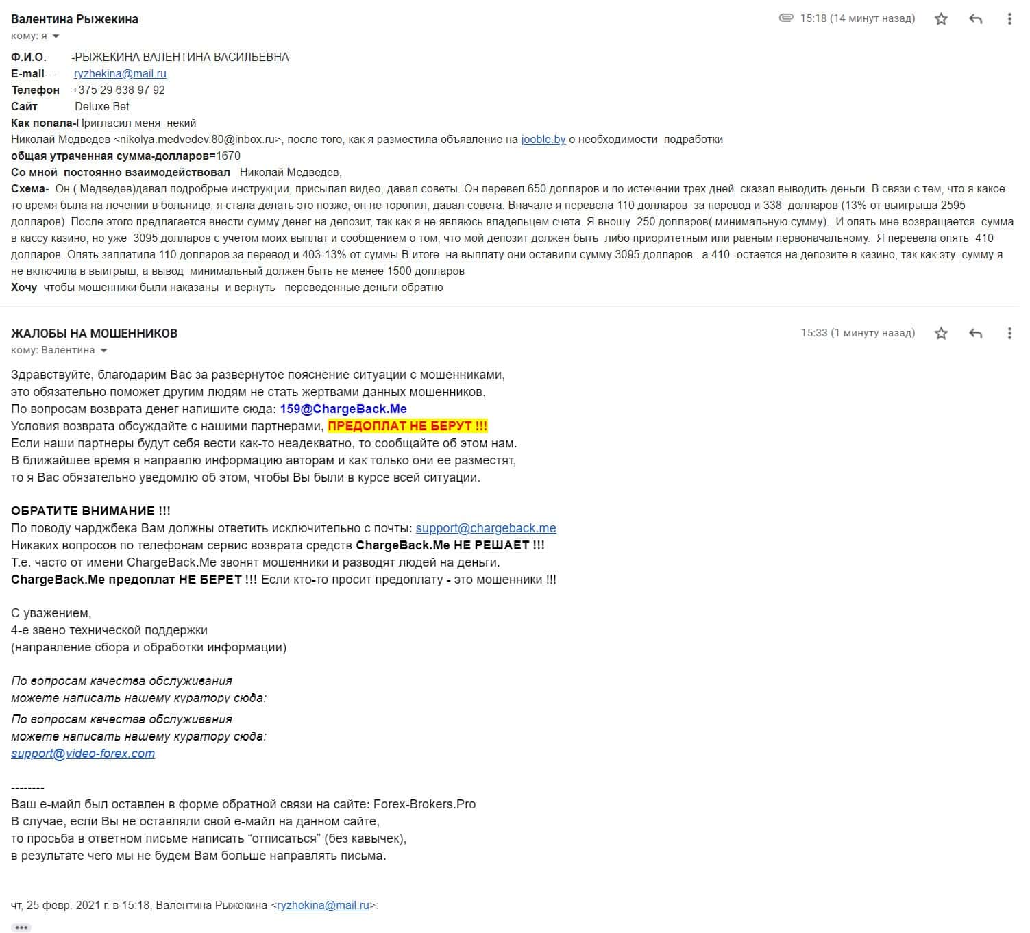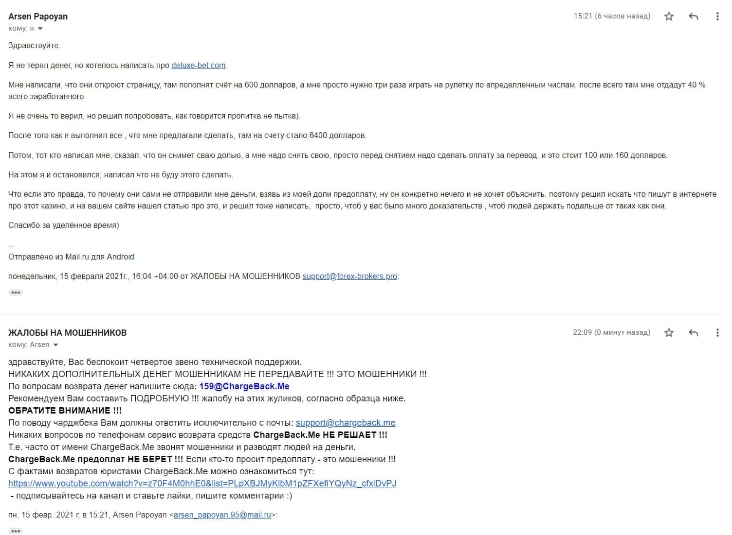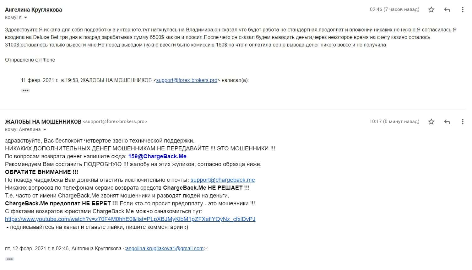 В данном разделе предлагаем увидеть информационный материал в виде жалобы на шулеров Делюкс Бет, которые обманули клиента на 2500 долларов США.