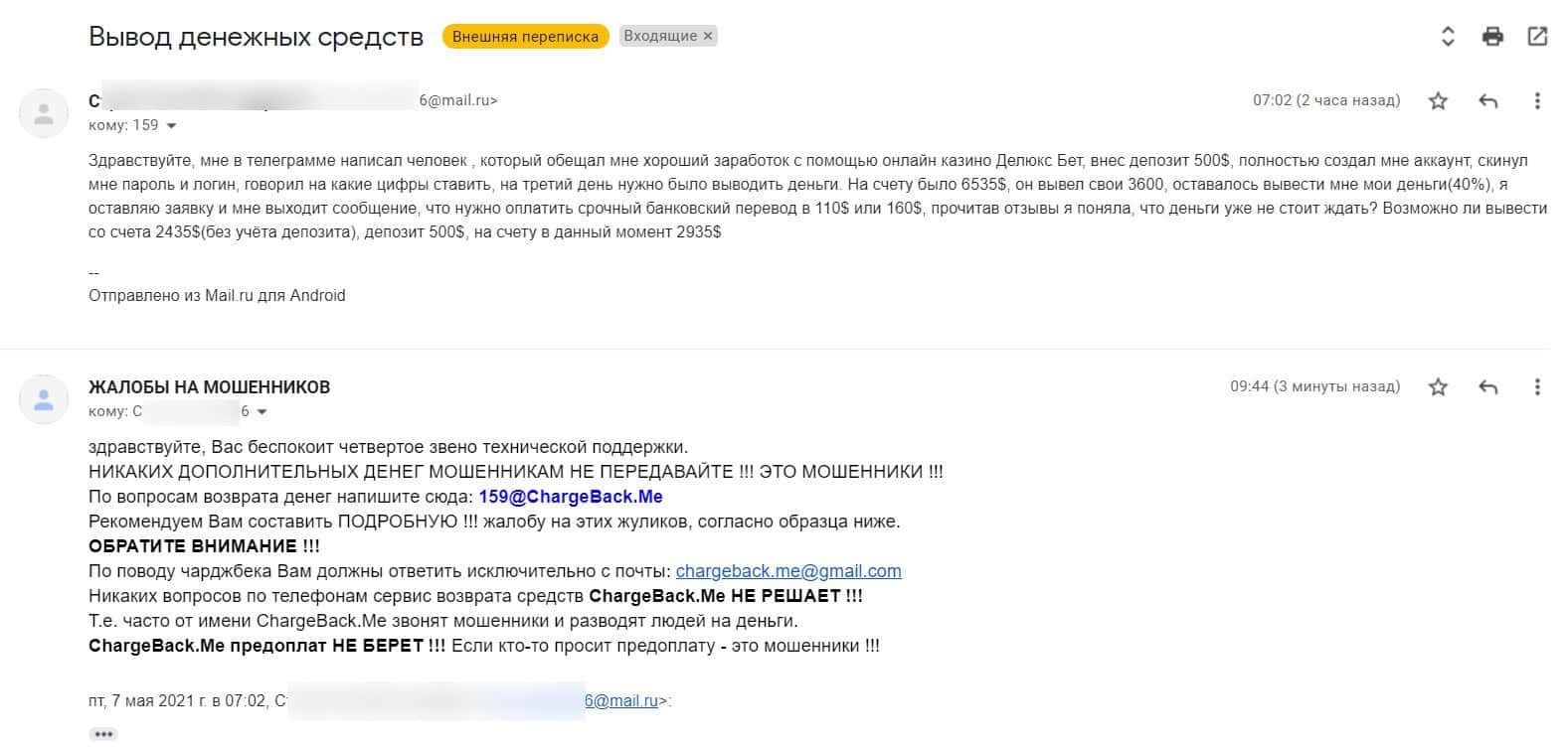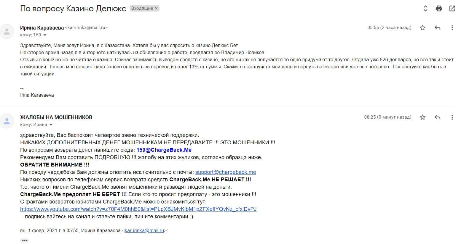- Очередная жалоба на мошенническую организацию Делюкс Бет