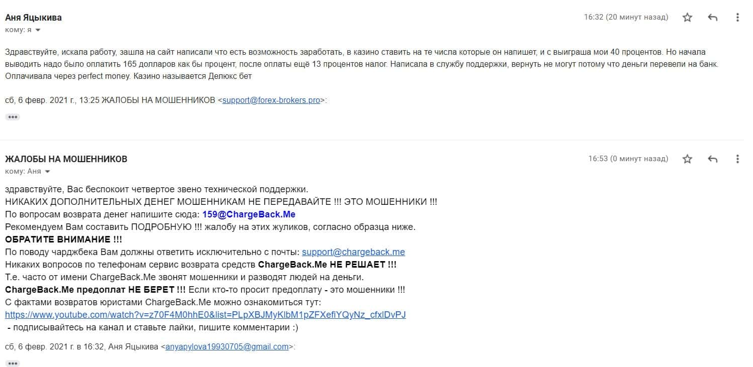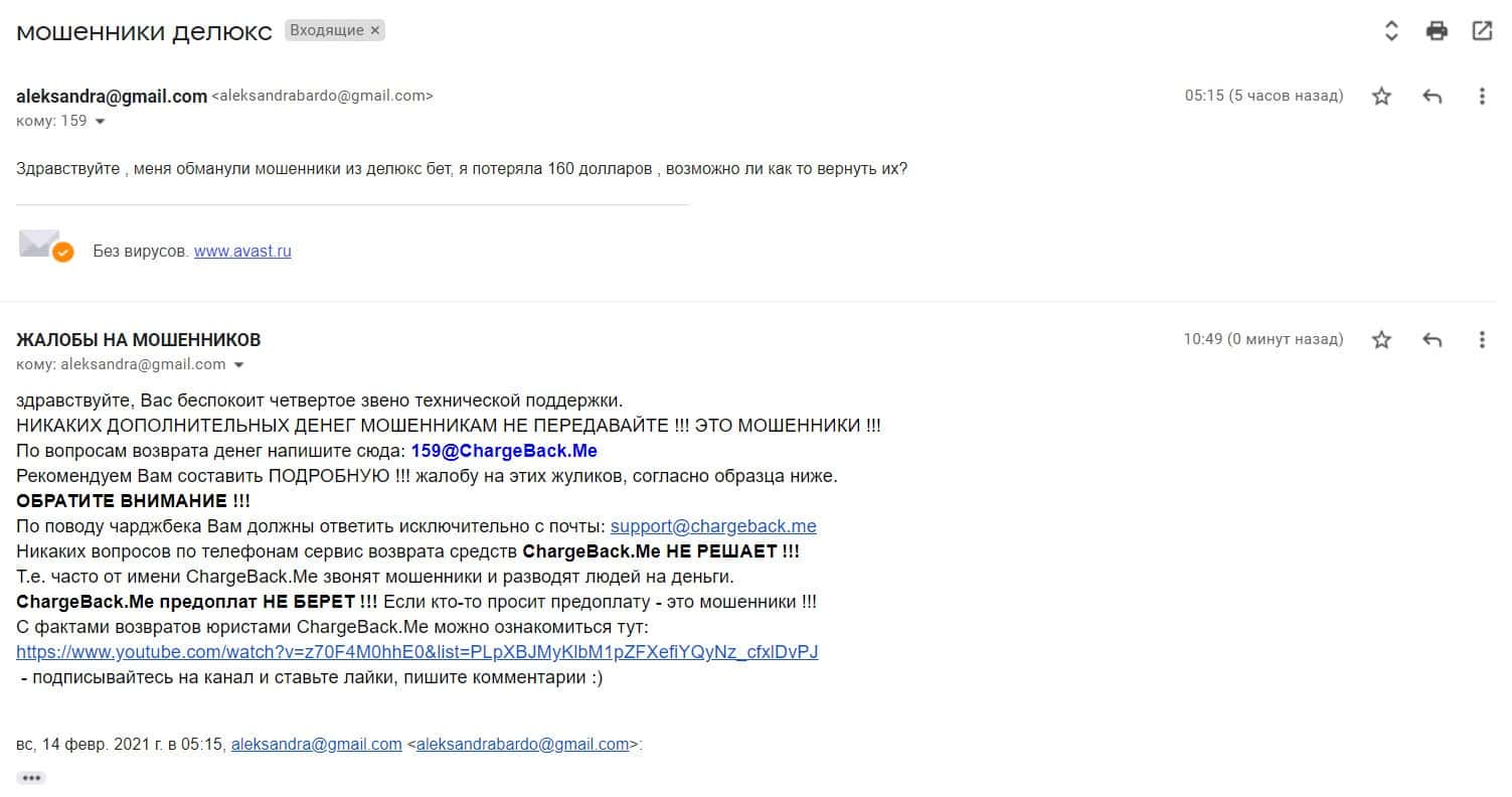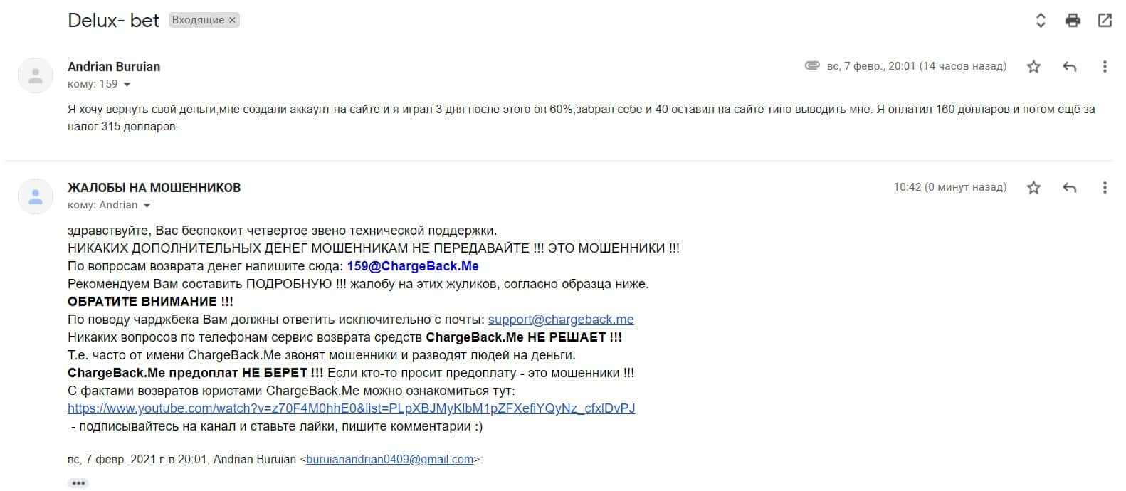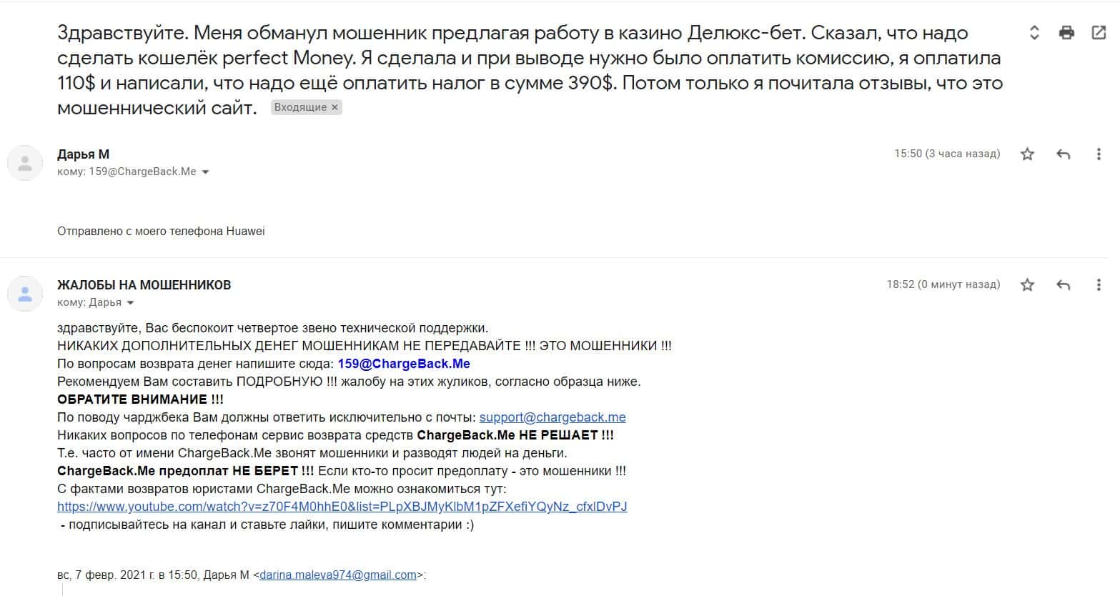 - Очередная жалоба на лохотронщиков Делюкс Бет