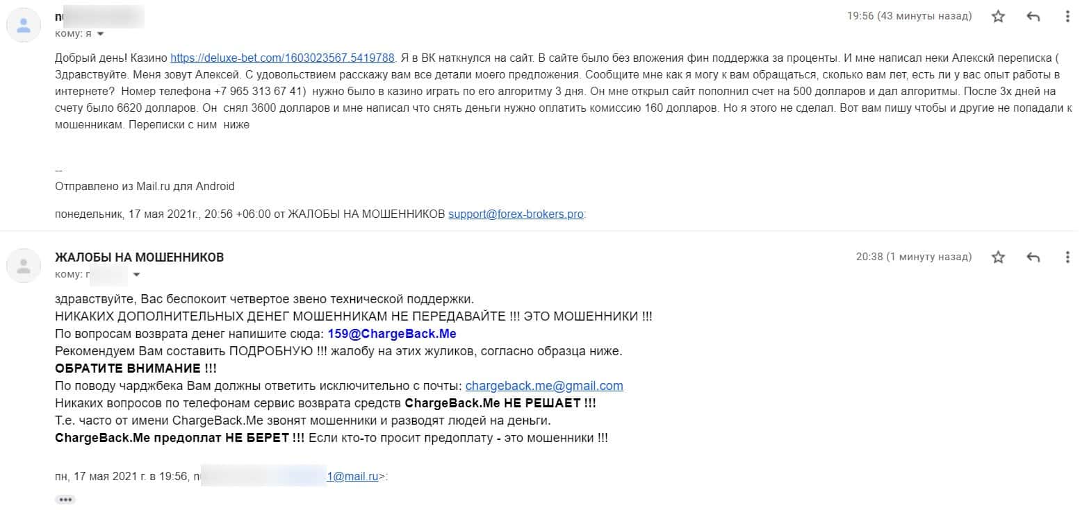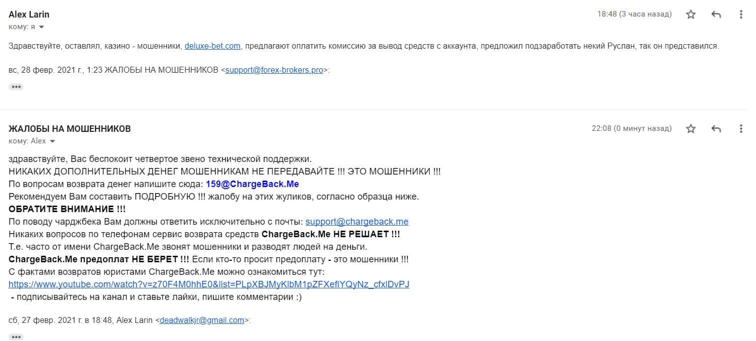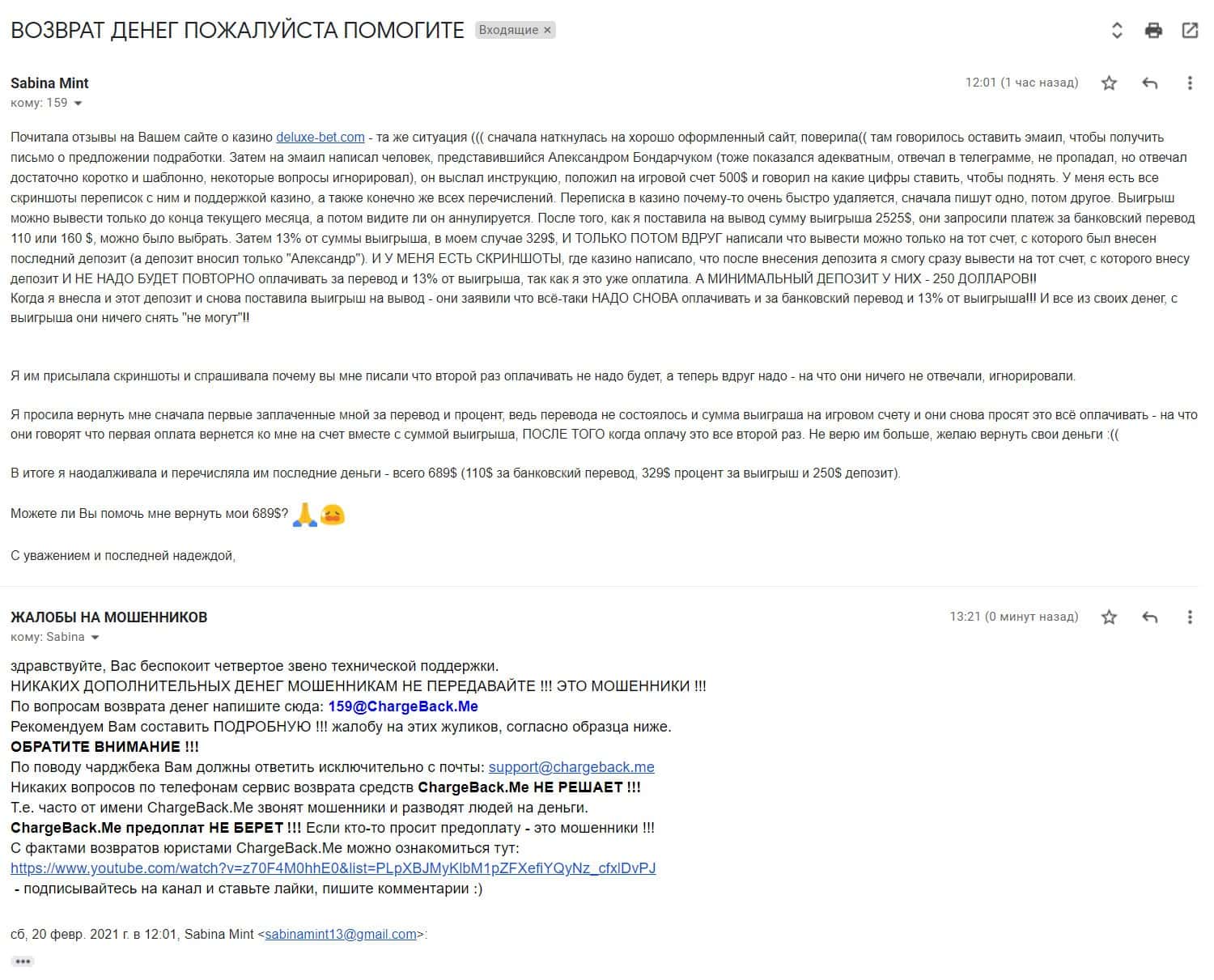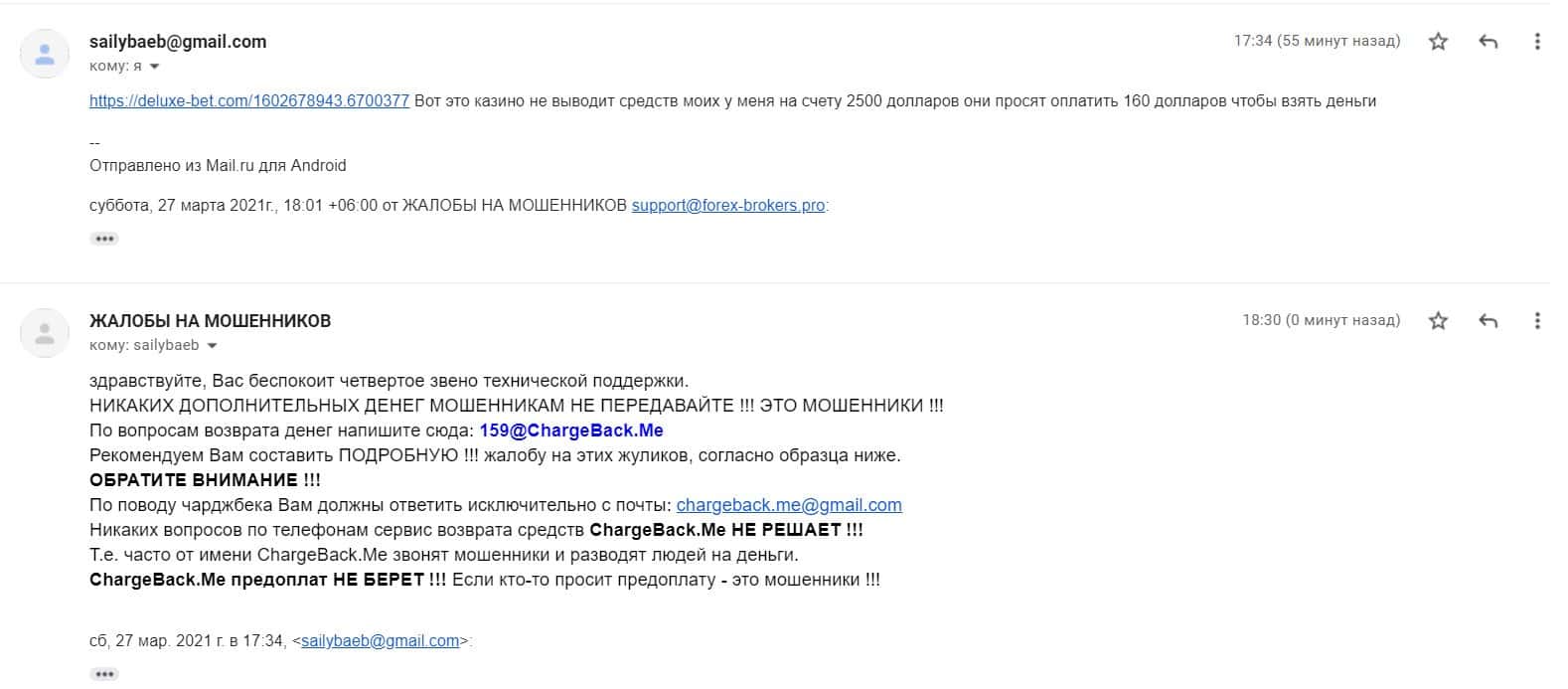 - Очередная жалоба на лохотронщиков Делюкс Бет