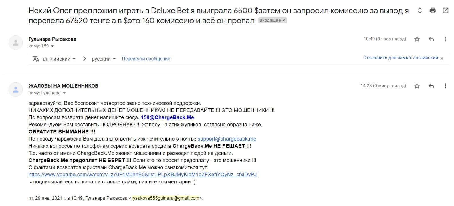 - Мошенники Делюкс Бет кинули клиента на 2900 $ США