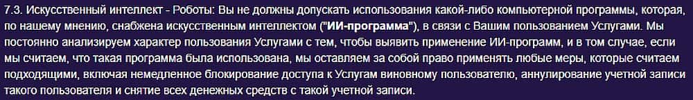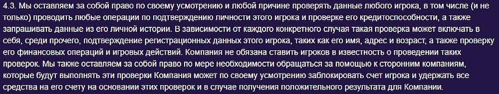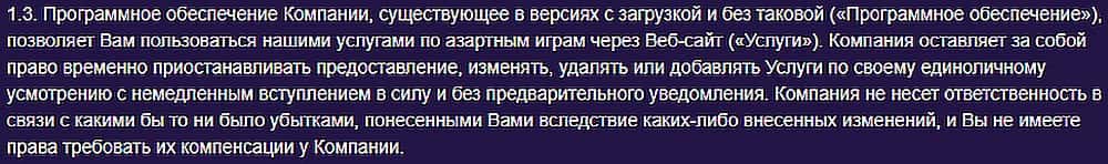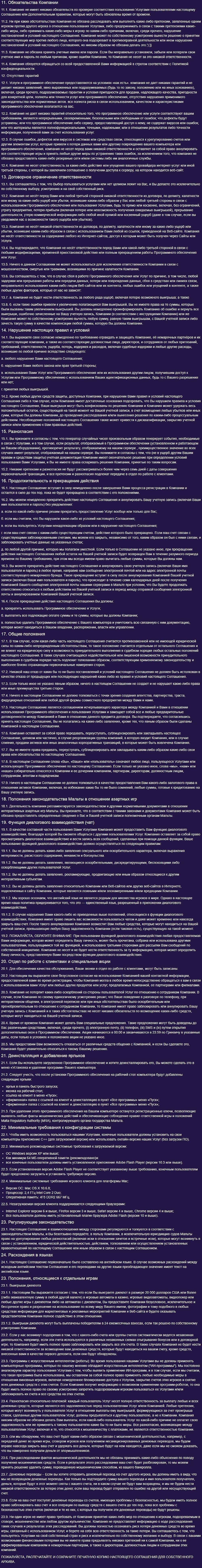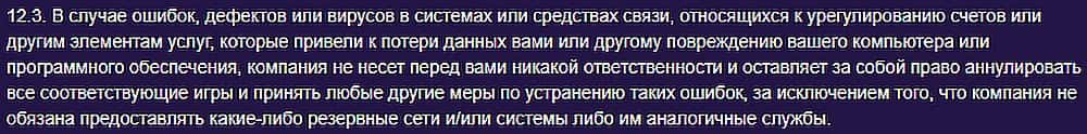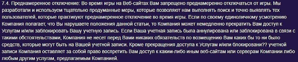 Далее идет полная версия клиентского антисоглашения, которую многие игроманы не читали, а зря. В договоре можно обнаружить много всевозможных подводных камней от жулья.