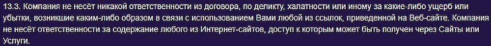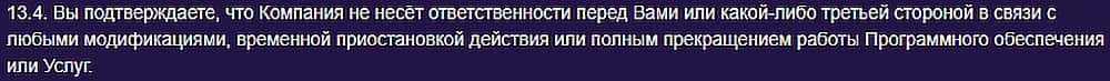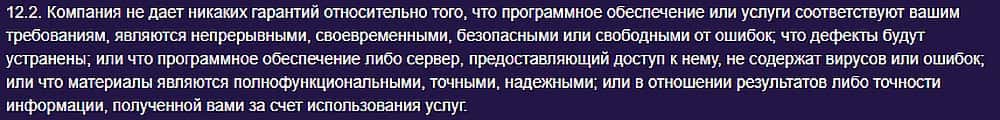 А вот еще один пункт лживого договора, в котором мошенники Deluxe Bet снимают с себя ответственность за надежность своего игрового псевдосервиса, который приносит лишь убытки.