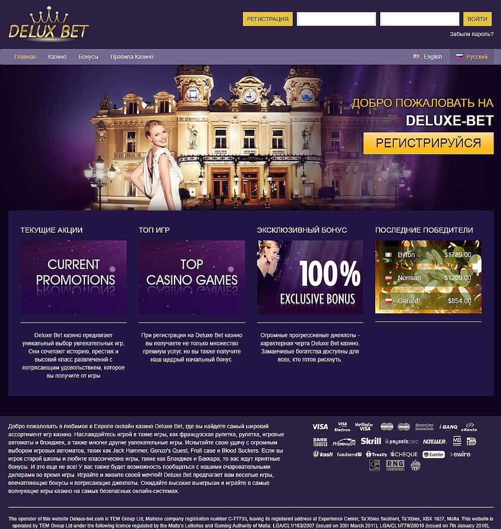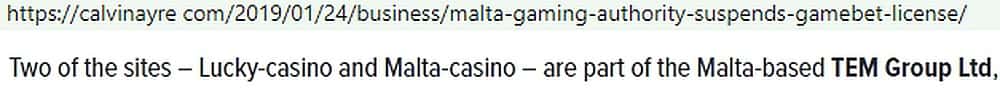Эта же халабуда, основавшая Делюкс Бет, причастна к созданию еще парочки авантюр, которые выдают себя за интернет-казино. Это забегаловки Лаки Казино и Мальта Казино.