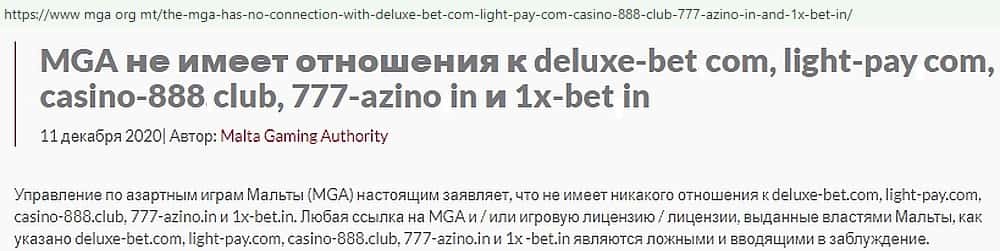А на самом деле, регулятор, который якобы выдал лицензию шарашкиной конторе Deluxe Bet, указал на своем сайте, что никакого отношения к этому липовому казино не имеет.