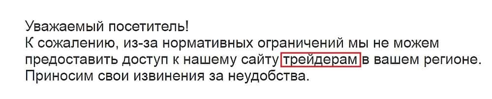 Обзор сайта можно начать с того, что если зайти с IP-адреса запрещенного региона, то становится понятно, что это лишь скрипт, переписанный с брокерского лохотрона, причем косо.