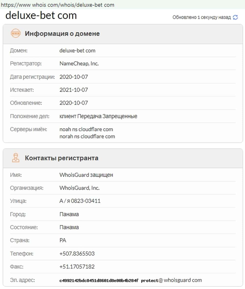 Тот, кто владеет доменным именем, прикрученным к разводилову Делюкс Бет, предпочитает остаться инкогнито, поэтому, он воспользовался платным сервисом для сокрытия данных.