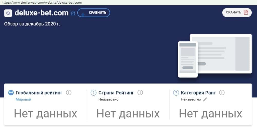 Показатели сайта онлайн-разводилова Делюкс Бет