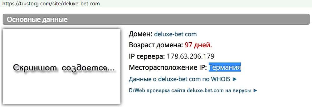 - Возраст доменного имени интернет-аферы Делюкс Бет