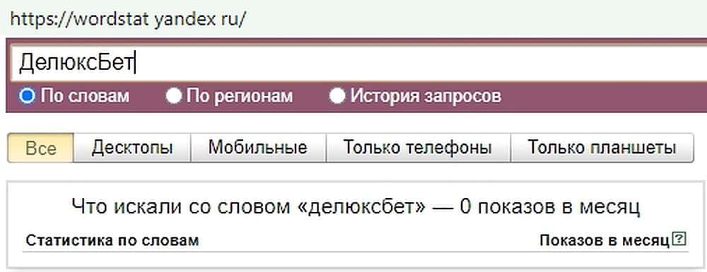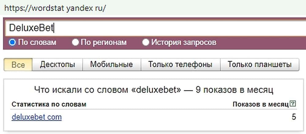 Как часто ищут лохушню Deluxe Bet пользователи Яндекс?
