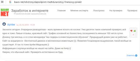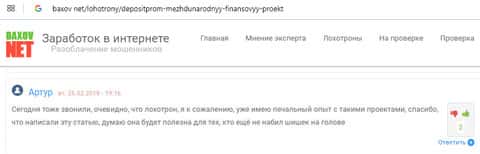 Вот еще один отзыв от потенциального клиента, который использует четкий анализ перед тем как вкладывать деньги. Когда мошенники DepositProm стали сильно давить на него, чтобы тот вложил денег, то клиент понял, что его разводят и не стал связываться с данной шулерской организацией.
